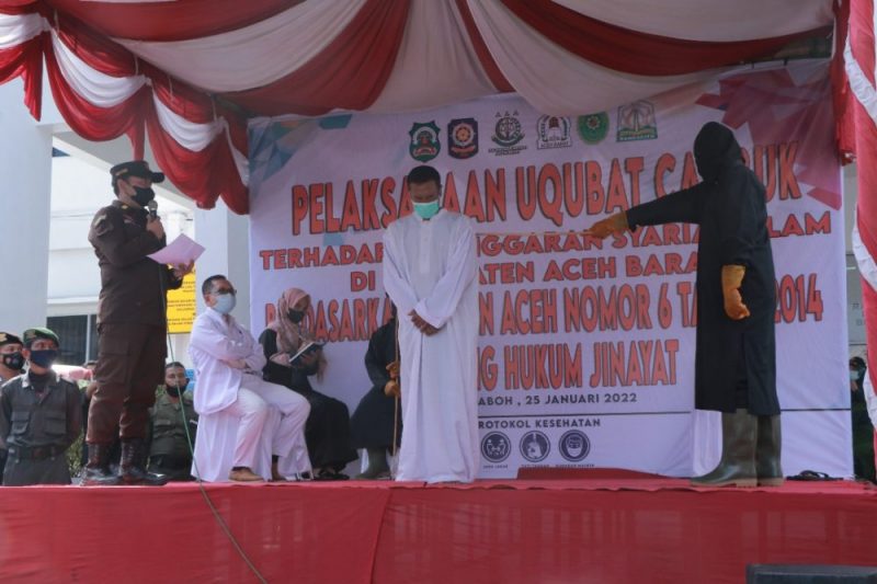 Uqubat cambuk yang dilaksanakan di halaman kantor Kejaksaan Negeri (Kejari) Meulaboh Kabupaten Aceh Barat dihadiri Bupati Aceh Barat yang diwakili Asisten perekonomian dan pembangunan Setdakab Aceh Barat, Drs. Husaini, M.Pd, Selasa (25/1/2022).