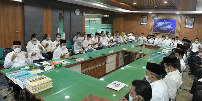 Dzikir dan do’a rutin ASN Pemerintah Aceh berlangsung dengan menerapkan protokol kesehatan. Hari ini, sebanyak 801 partisipan mengikuti kegiatan ini, setiap partisipan berjumlah 10 hingga 30 peserta. (Adv)