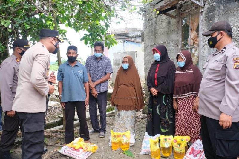 NOA | Aceh Selatan – Kapolres Aceh Selatan AKBP Ardanto Nugroho S.I.K.,S.H.,M.H bersama Ketua Cabang Bhayangkari Aceh Selatan, pasca banjir di sejumlah wilayah di Aceh Selatan langsung turun ke lokasi dan melihat langsung korban banjir yang berada di Desa Kedai Padang dan Desa Kotafajar Kec.Kluet Utara Kab.Aceh Selatan, Minggu (7/11/21).