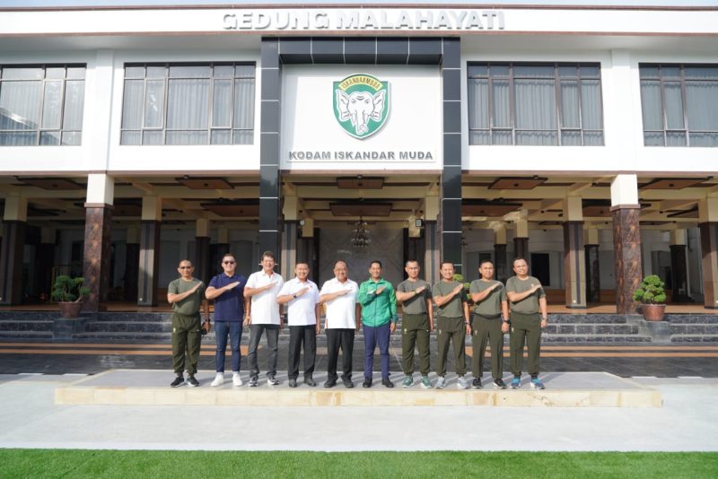 Banda Aceh – Panglima Komando Daerah Militer Iskandar Muda (Pangdam IM) Mayor Jenderal TNI Novi Helmy Prasetya, S.I.P, M.I.P menerima kunjungan Kerja Ketua Umum Komite Olahraga Nasional Indonesia (KONI) Pusat Letjen TNI Purn Marciano Norman di Makodam IM, Jum’at (04/08/23).