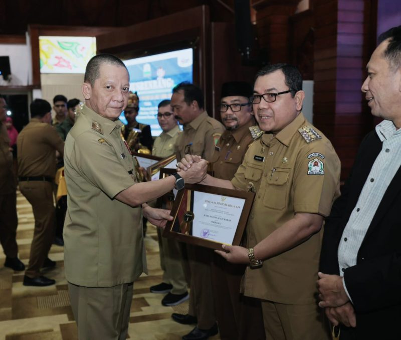 Penghargaan yang diserahkan langsung oleh Gubernur Aceh Ahmad Marzuki didampingi Kepala Bappeda Aceh HT Ahmad Dadek kepada Pj. Bupati Aceh Barat Drs. Mahdi Efendi di Anjong Mon Mata Meuligoe Gubernur Aceh Banda Aceh, Selasa (11-04-2023)