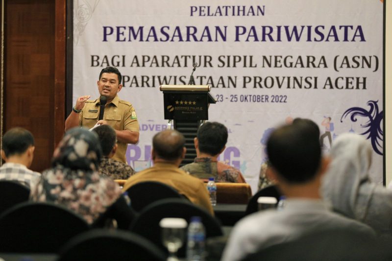 Pernyataan tersebut disampaikan Almuniza saat memberikan arahan pada kegiatan Pelatihan Pemasaran Pariwisata bagi ASN Kepariwisataan Aceh di Hermes Palace Hotel, Senin (24/10/2022)