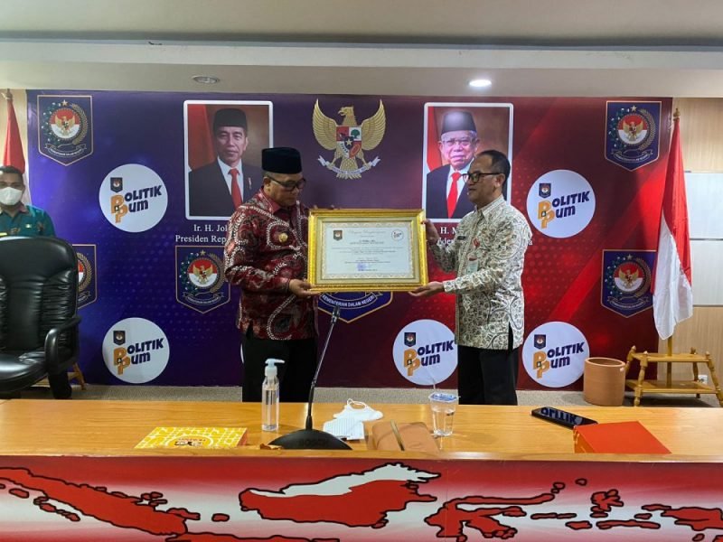 Penghargaan tersebut ditandatangani oleh Direktur Jenderal Politik dan Pemerintahan Umum Kemendagri DR Drs Bahtiar MSi yang diserahkan oleh Direktur Bina Ideologi, Karakter dan Wawasan Kebangsaan Kementerian Dalam Negeri Republik Indonesia Drajat Wisnu Setyawan.