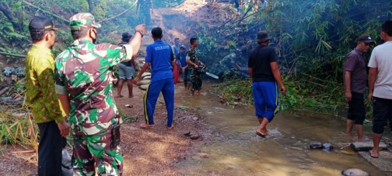 NOA | Abdya – Sebagai bentuk sinergitas TNI bersama rakyat, personil dari Koramil 05/Tangan-Tangan, Kodim 0110/Aceh Barat Daya (Abdya) melakukan gotong-royong bersama warga untuk membersihkan aliran sungai Krueng Tangan-Tangan yang terhalang akibat sebongkahan pokok bambu tumbang.