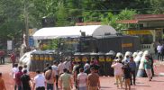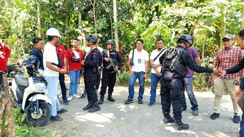 Banda Aceh – Personel Kompi 3 Batalyon A Pelopor Brimob Polda Aceh men-sterilkan lokasi Rumoh Geudong, menjelang kedatangan Presiden RI Joko Widodo ke Kabupaten Pidie, Rabu, 21 Juni 2023.