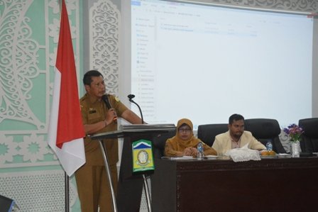 Hadir Sekdis Sosial Aceh Besar Aulia Rahman,S.STP, M.Si, pemateri merupakan para Kabid Dinas Sosial Kabupaten Aceh Besar. **