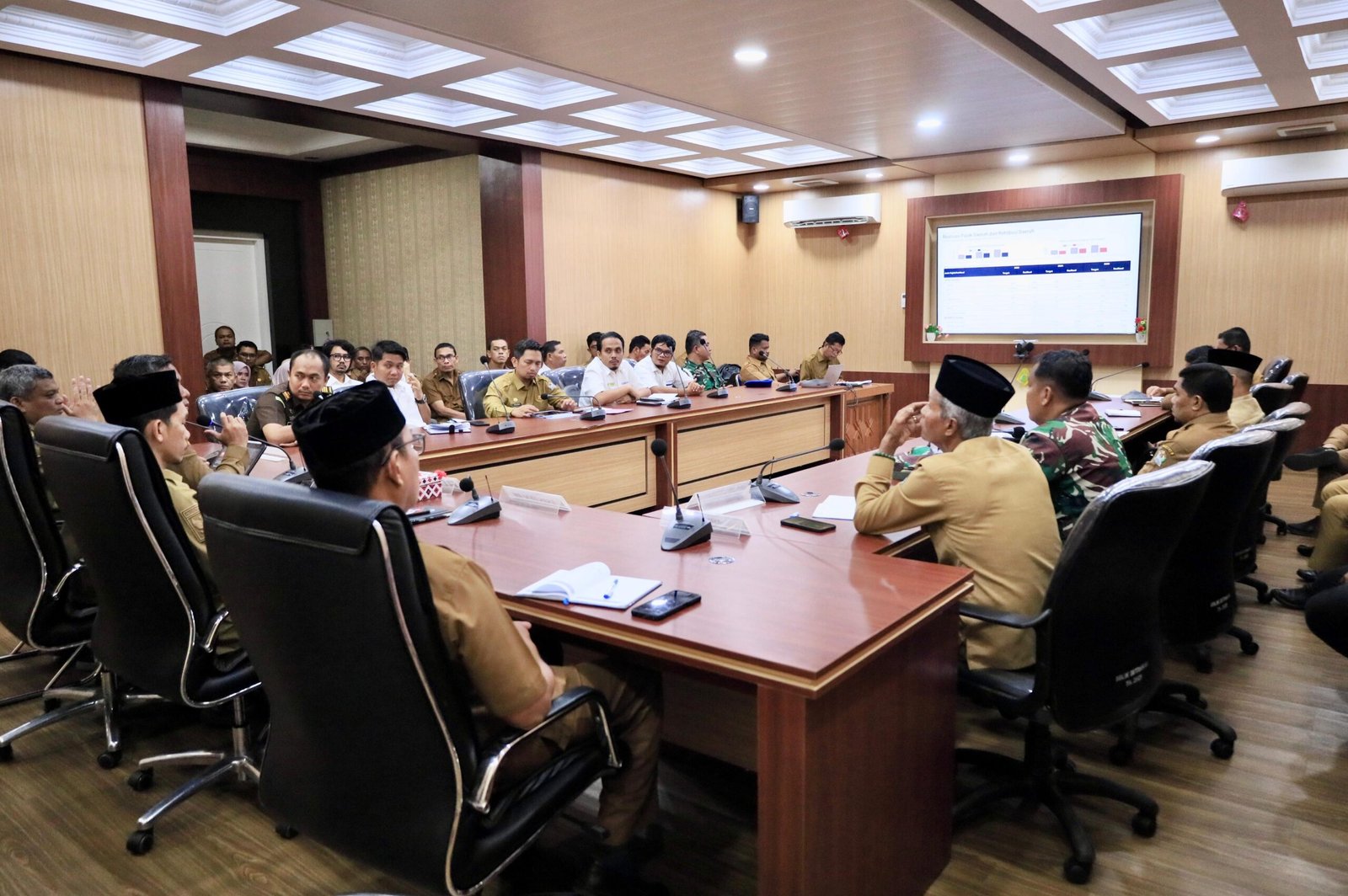 Bupati Aceh Barat Tarmizi SP, MM memimpin rapat perdana Satgas Optimalisasi Pendapatan Asli Daerah (PAD) bersama jajaran SKPK dan unsur terkait di ruang rapat Teuku Umar, Setdakab Aceh Barat, Senin (2/3/2026). Foto: Dok. Istimewa