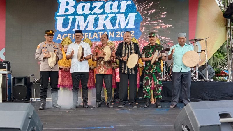 NOA | Aceh Selatan – Bupati Aceh Selatan, Tgk.Amran membuka acara Bazar Produk Unggulan dan Kuliner Usaha Mikro Kecil Menengah (UMKM) yang berlangsung selama 3 hari, dari tanggal 12 -14 Agustus 2022, bertempat di Ruang Terbuka Hijau (RTH) Taman Pala Indah Tapaktuan, Jumat  sore (12/8/2022).