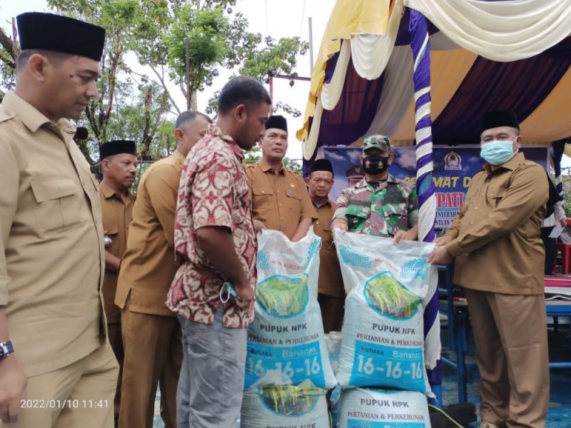 NOA l Aceh Barat – Bupati Aceh Barat H. Ramli MS serahkan secara simbolis bantuan pupuk NPK untuk 12 Kecamatan dan bantuan hewan ternak kerbau untuk 8 kecamatan dalam kabupaten setempat, Senin (10/1/2022).