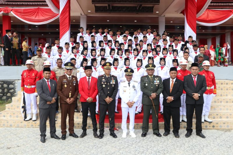 Aceh Timur – Komandan Kodim 0104/Aceh Timur Letkol Inf Tri Purwanto,S.I.P., yang didampingi Ketua Persit Kartika Chandra Kirana Cabang XXI Dim 0104 Koorcab Rem 011 PD Iskandar Muda Ny. Yuni Tri Purwanto, S.E., M.M., ikuti prosesi upacara Hari Ulang Tahun (HUT) Proklamasi Kemerdekaan Republik Indonesia ke-78 tahun 2023, di Lapangan Upacara Pusat Pemerintahan Kabupaten Aceh Timur.