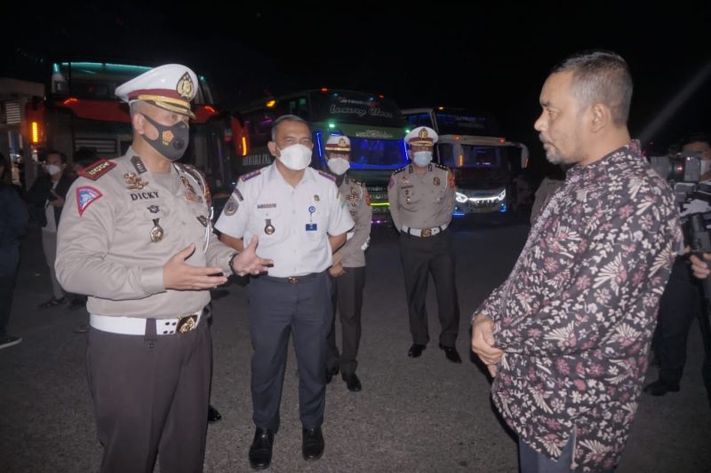 NOA | Banda Aceh – Dirlantas Polda Aceh Kombes Dicky Sondani yang didampingi Kadishub, Kacab Jasa Raharja, dan Kepala Terminal Batoh meninjau arus mudik lebaran Idulfitri di Terminal Batoh, Kota Banda Aceh, Jumat malam, 22 April 2022.