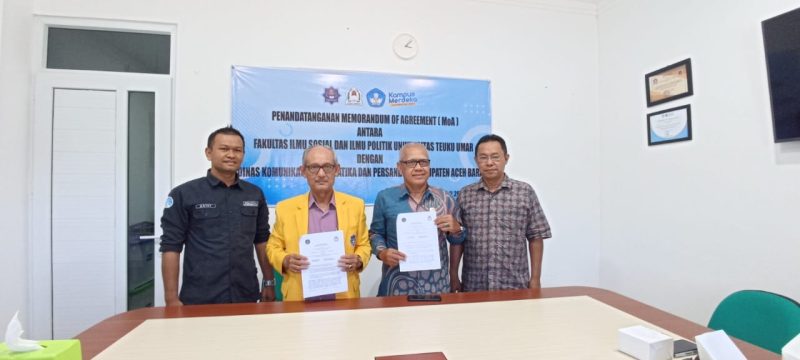 Meulaboh – Dinas Komunikasi Informatika dan Persandian kabupaten Aceh Barat melakukan penandatanganan Memorandum Of Agreement (MoA) dengan Fakultas Ilmu Sosial dan Ilmu Politik Universitas Teuku Umar Meulaboh pada kamis siang (27-07-2023)