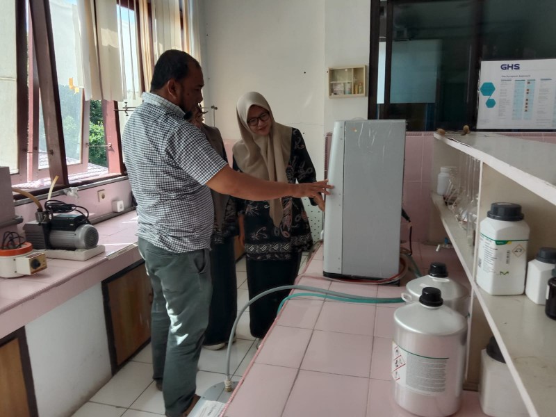 “Berkutnya, Laboratorium Instrumen Peralatan meliputi alat-alat AAS ( Atomic Absorption Spectrophotometer ), GCMS ( Gass Cromatography Mass Spectroscophy), HPLC ( High Performance Liquid Cromatography ). Alat ini berkemampuan Menganalisa cemaran logam pada sample dan menganalisa suatu senyawa di dalam sampel,” sambung Munawar.