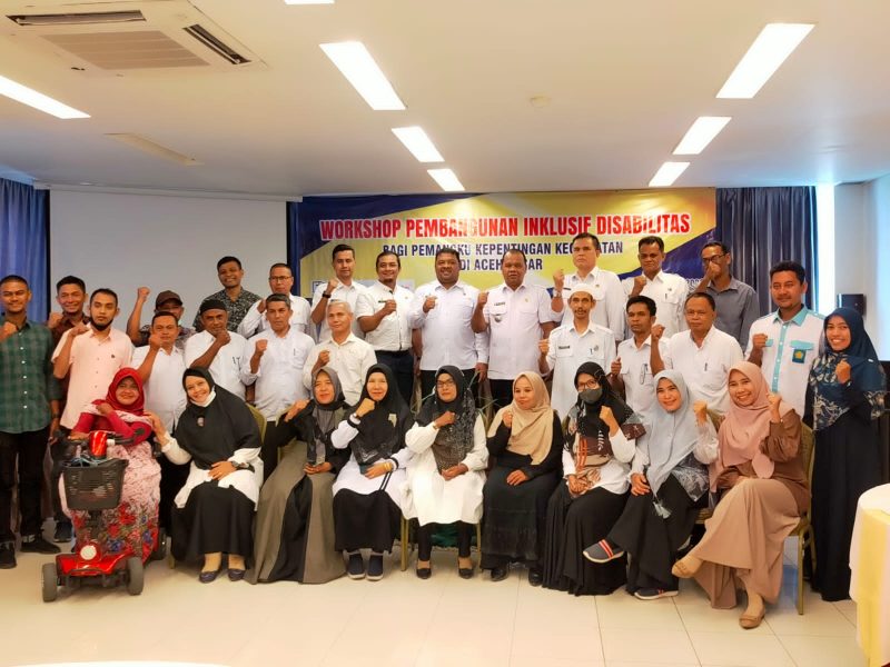 Banda Aceh – Forum Bangun Aceh (FBA) menggelar kegiatan Workshop Pembangunan Inklusif Disabilitas bagi pemangku kepentingan untuk 12 Kecamatan di Aceh Besar.
