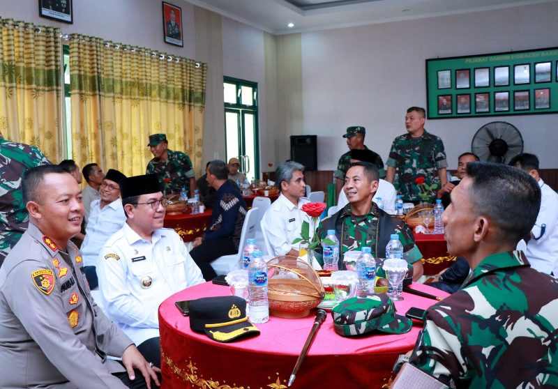 Meulaboh – Penjabat (Pj) Bupati Aceh Barat, Drs. Mahdi Efendi, bersama jajaran Forkopimda Aceh Barat, menyambut kedatangan Panglima Kodam (Pangdam) Iskandar Muda (IM), Mayor Jenderal (Mayjen) TNI, Novi Helmi Prasetya, S.I.P., M.I.P., dan Ketua Persatuan Istri Prajurit Kartika Chandra Kirana Panglima Daerah Iskandar Muda (Persit KCK PD IM) Nyonya Iin Novi Helmy Prasetya, di Markas Komando Distrik Militer (Makodim) 0105/Aceh Barat, Rabu (03-05-2023).