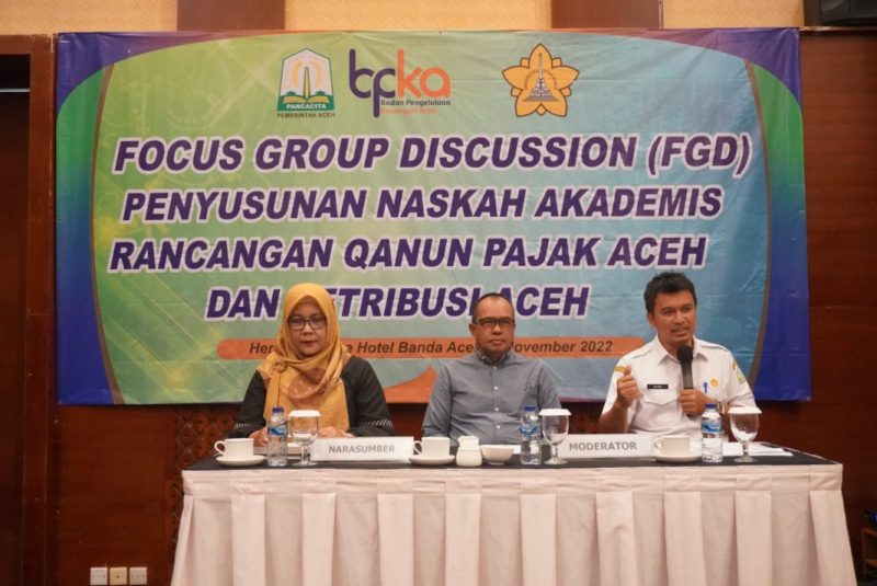BANDA ACEH – Badan Pengelolaan Keuangan Aceh (BPKA) bersama Tim Fakultas Ekonomi dan Bisnis Universitas Syiah Kuala melaksanakan kegiatan Focus Group Discussion (FGD) Penyusunan Naskah Akademik Rancangan Qanun Pajak Aceh dan Retribusi Aceh, Banda Aceh, (03/11/22).