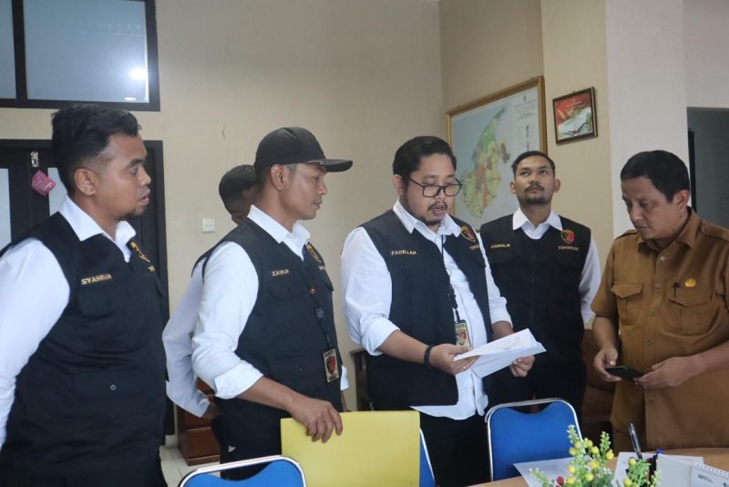 Banda Aceh – Unit Tipikor Satreskrim Polresta Banda Aceh, mengamankan Kadis PUPR Kota Banda Aceh berinisial MY di ruang kerja, Pango, Senin (7/8/2023).