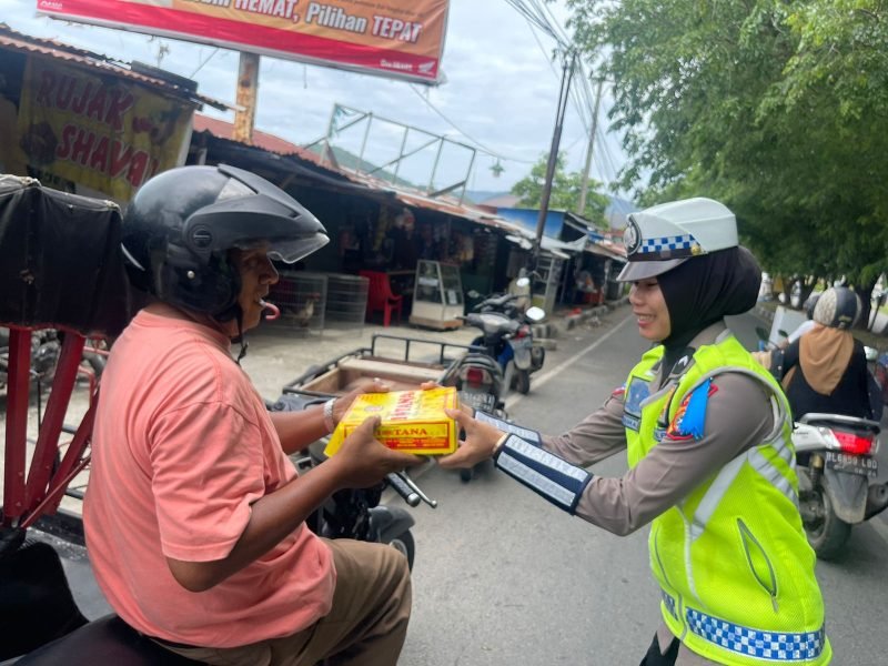 Jumat Berkah, Personel Ditlantas Polda Aceh Bagikan Nasi Kotak untuk Masyarakat
