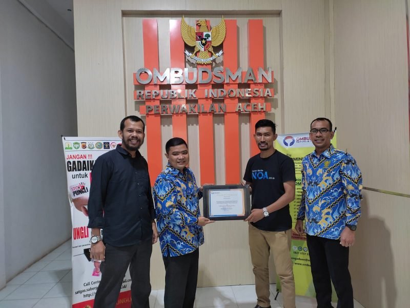 NOA | Banda Aceh  – Kantor Berita NOA.co.id dibawah naungan PT Media NOA Indonesia menerima Piagam Penghargaan dari Ombudsman RI Perwakilan Aceh, Selasa (11/01/2022).