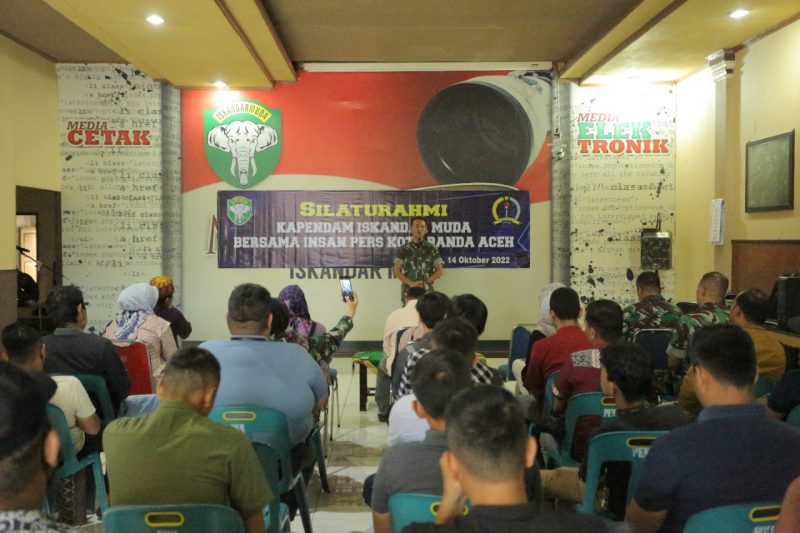 NOA | Banda Aceh – Kapendam IM Kolonel Arm Joko Setiyo K, M.Si (Han) melaksanakan silaturahmi dengan insan pers kota Banda Aceh di Media Center Pendam IM, Jl. Nyak Adam Kamil II Neusu, Banda Aceh, Jumat (14/10/2022).