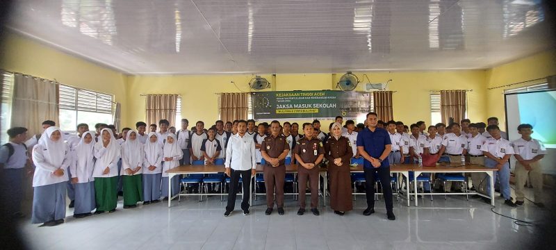 Banda Aceh – Kejaksaan Tinggi (Kejati) Aceh melaksanakan kegiatan penyuluhan dan penerangan hukum tahun 2024 melalui program Jaksa Masuk Sekolah (JMS) di SMK Negeri 2 Banda Aceh, di Lhong Raya, Kecamatan Bandar Raya,Kota Banda Aceh, Selasa Rabu, 6 Maret 2024.