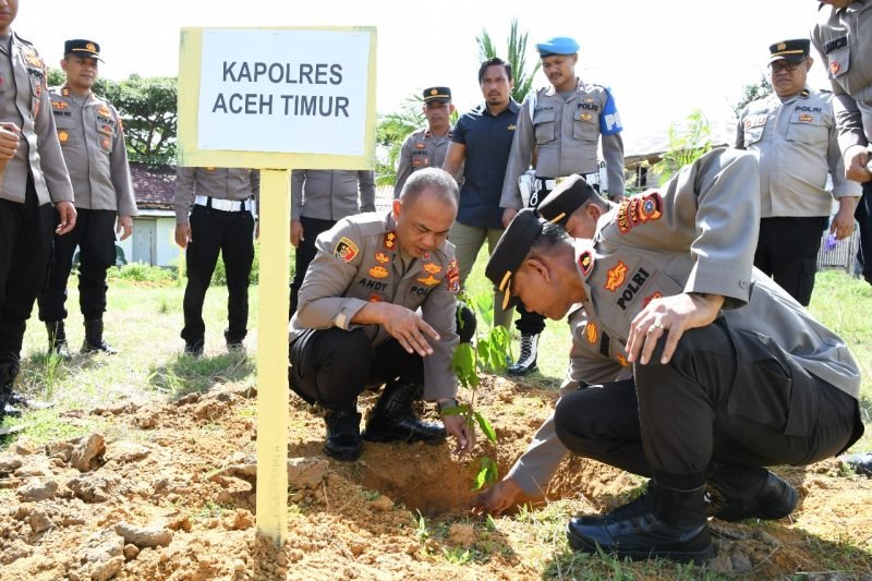 Aceh timur – Polres Aceh Timur menggelar aksi penanaman pohon yang dicanangkan secara serentak oleh Kapolri Jenderal Polisi Drs. Listyo Sigit Prabowo, M.Si.