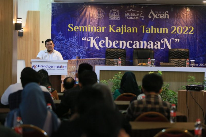 NOA | Banda Aceh – Dinas Kebudayaan dan Pariwisata (Disbudpar) Aceh melalui UPTD Museum Tsunami menggelar seminar kajian terkait kebencanaan di Aula Hotel Grand Permata Hati, Kota Banda Aceh, Rabu, 5 Oktober 2022.