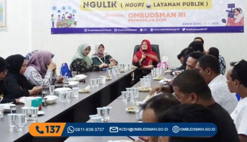 Banda Aceh – Ombudsman RI Perwakilan Aceh menyampaikan hasil penilaian kepatuhan tahun 2023 dan rencana kerja tahun 2024 dalam acara Ngulik (Ngopi Pelayanan Publik) bersama rekan-rekan media yang tergabung dalam Forum Wartawan Peduli Pelayanan Publik di di Kantor Ombudsman RI Perwakilan Aceh, Jumat, (2/2/2024).