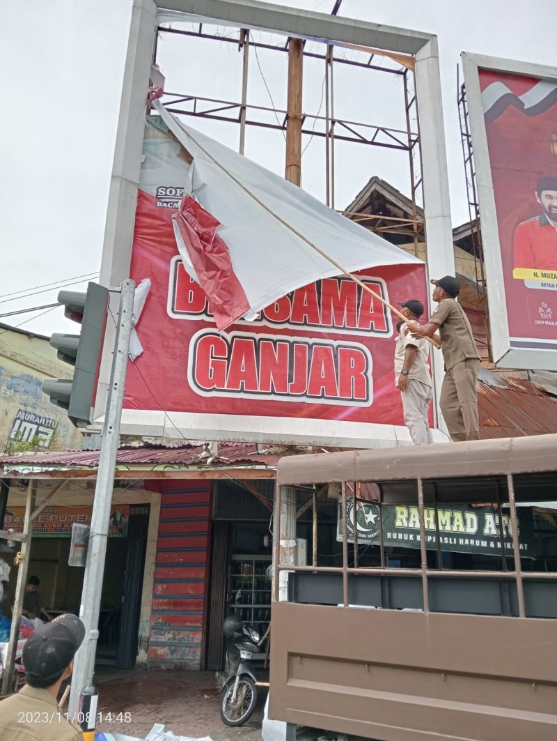 Meulaboh – Panwaslih Aceh Barat bersama Satpol PP dan Tim gabungan TNI/Polri berhasil melaksanakan Penertiban Alat Peraga Kampanye (APK) yang melanggar aturan sesuai PKPU nomor 15 Tahun 2023 tentang Tahapan Kampanye dan sebagai tindaklanjut terhadap hasil Rapat Koordinasi Panwaslih dengan Satpol PP pada tanggal 31 Oktober 2023 lalu.