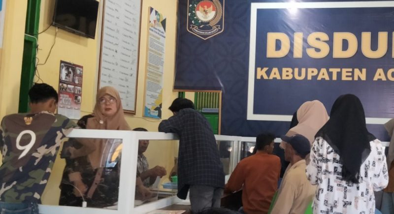 Aceh Barat Daya – Pasca libur dan cuti bersama hari raya Idul Fitri 1444 Hijriah/2023 Masehi jumlah pemohon administrasi kependudukan di Dinas Kependudukan dan Catatan Sipil (Dukcapil) Kabupaten Aceh Barat Daya (Abdya) mengalami peningkatan yang cukup signifikan.