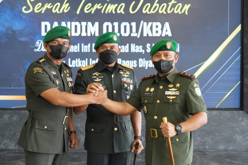 Dalam acara tersebut diserahterimakan jabatan Asrendam IM dari Kolonel Arh Rachmady Barungsinang, S.T., M.M. kepada Kolonel Inf Irwan Harjatmono, jabatan Dandim 0101/KBA dari Kolonel Inf Muhammad Nas, S.I.P., M.Si kepada Letkol Inf Andy Bagus Diyan Arika, S.I.P., serta penyerahan Jabatan Pa LO TNI AL Kodam IM dari Kolonel Mar Drs. Catur Joko Wahyono kepada Pangdam IM.