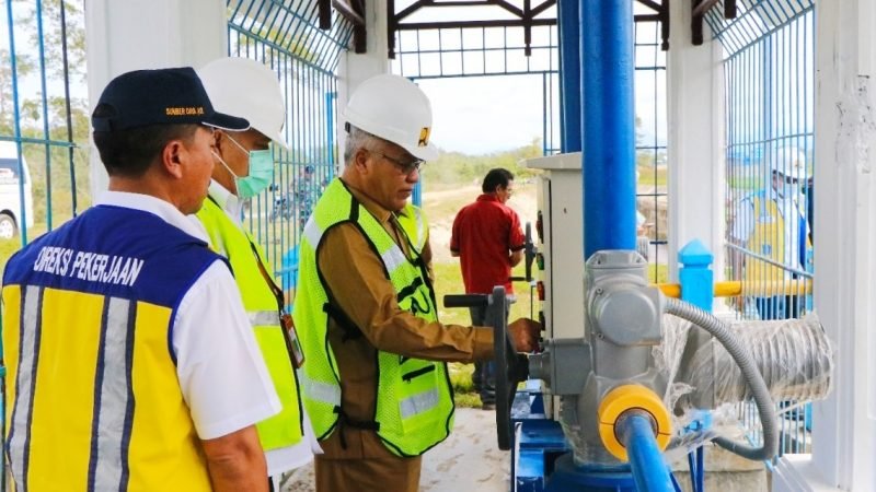 NOA | Meulaboh – Pemerintah Aceh Barat bersama Kasubdit wilayah I, Direktorat Irigasi dan Rawa Ditjen SDA Kementerian PUPR RI, Parlinggoman Simanungkalit, S.T.,MPSDA dan Kepala Balai Wilayah Sungai Sumatera-I Kementerian PUPR, Heru Setiawan, ST., M.Eng melakukan uji pengaliran (Running Test) Sistem Jaringan Irigasi di bendungan Lhok Guci yang merupakan Proyek Strategis Nasional Provinsi Aceh, Selasa 13-09-2022).