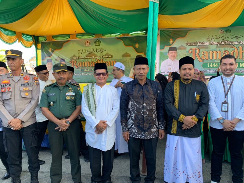 Meulaboh – Penjabat (Pj) Bupati Aceh Barat diwakili Sekretaris Daerah, Marhaban SE., M.Si., melepas ribuan peserta pawai ta’aruf bertajuk “Bersatu Umat Untuk Indonesia Hebat” dalam rangka menyambut bulan suci ramadhan 1444 Hijriah tahun 2023 yang dilaksanakan di halaman Mesjid Agung Baitul Makmur, Meulaboh, Kabupaten Aceh Barat, Kamis (16-03-2023).