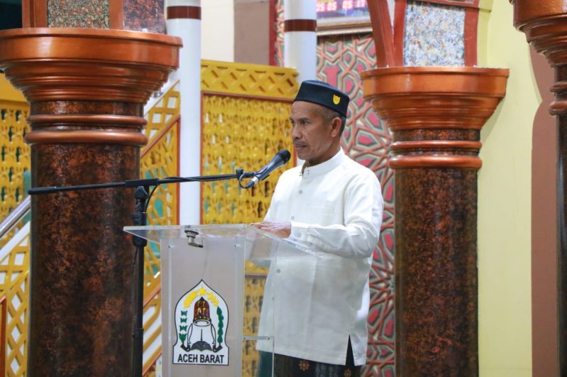 Meulaboh – Penjabat (Pj) Bupati Aceh Barat diwakili Sekretaris Daerah (Sekda), Marhaban SE., M.Si., menghadiri acara peringatan Nuzulul Quran ramadhan 1444 Hijriah tahun 2023 tingkat Kabupaten Aceh Barat, yang dilaksanakan di Masjid Agung Baitul Makmur Meulaboh, Kabupaten Aceh Barat, Kamis (06-04-2023).