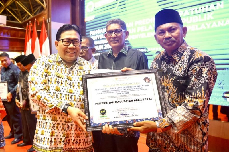 “Alhamdulillah, berdasarkan keputusan Ombudsman RI, Aceh Barat berhasil meraih penghargaan kepatuhan penyelenggaraan pelayanan publik,” katanya.