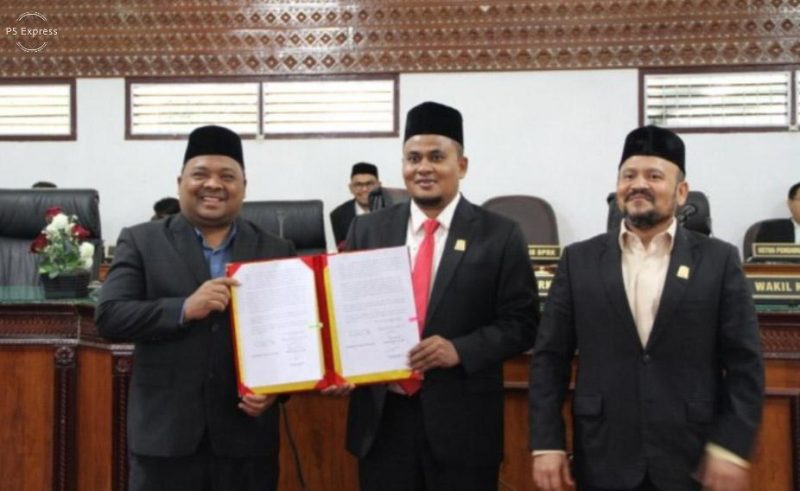NOA | Aceh Besar – Penjabat (Pj) Bupati Aceh Besar Muhammad Iswanto S.STP MM yang diwakili Sekdakab Aceh Besar, Drs. Sulaimi, M.Si menandatanganani Nota Kesepakatan Perubahan Kebijakan Umum Anggaran (KUA) dan Perubahan Prioritas dan Plafon Anggaran Sementara (PPAS) Anggaran Pendapatan dan Belanja Kabupaten Aceh Besar (APBK) TA 2022, dengan pimpinan DPRK Aceh Besar di ruang Rapat Paripurna DPRK Aceh Besar, Kota Jantho, Jumat (23/9/2022) siang.