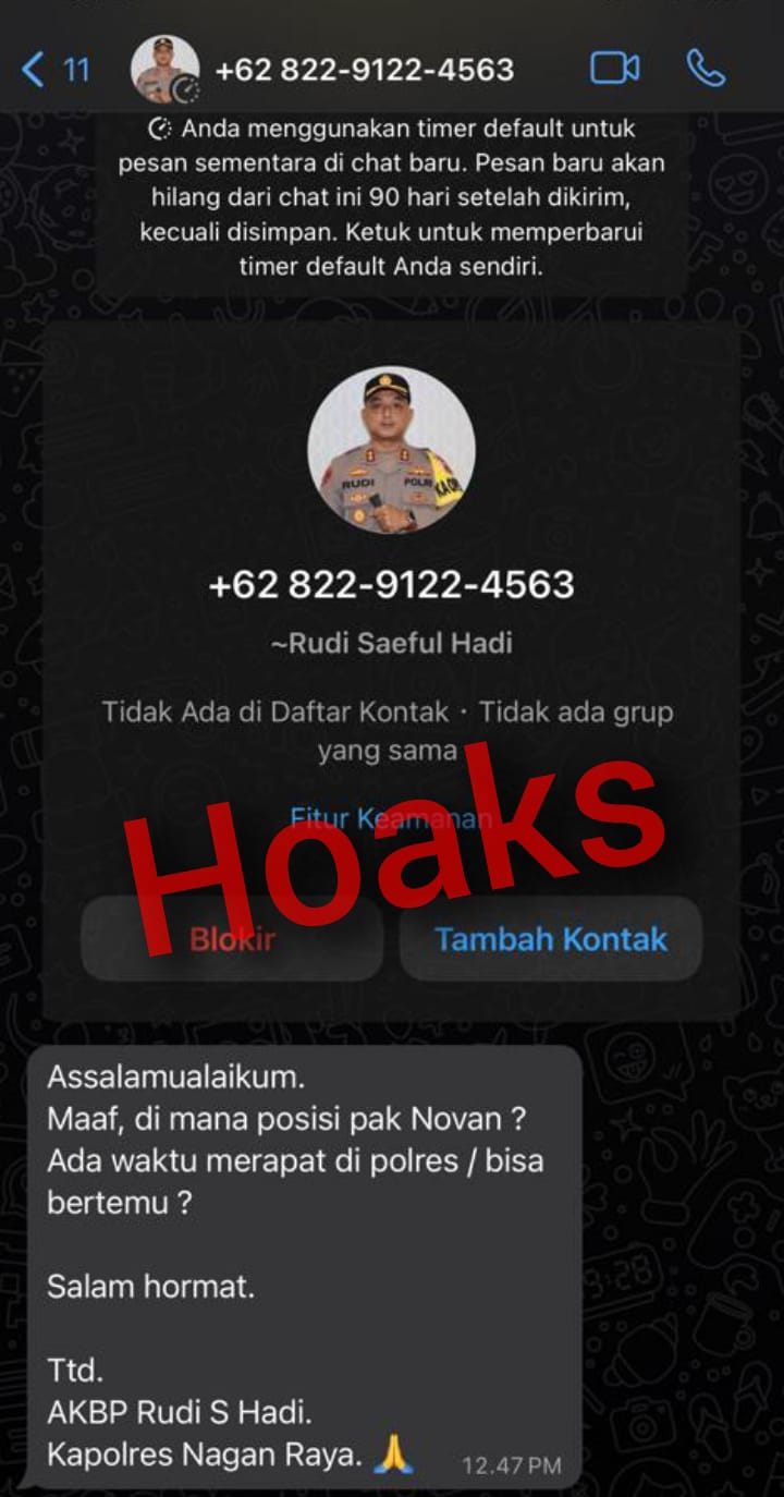 Informasi di himpun Wartawan Senin 11 Desember 2023 diduga terjadi penipuan yang mencatut atau mengatasi namakan Kapolres Nagan Raya Kapolres Nagan Raya AKBP Rudi Saeful Hadi, S.I.K.