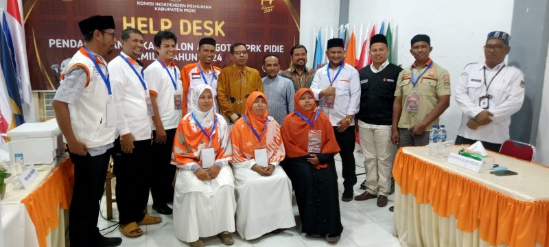 Prosesi penerimaan pendaftaran Bacaleg, bertempat di Media Center KIP Pidie dipandu oleh Komisioner KIP Divisi Teknis dan Penyelenggaraan Pemilu, Hendra Darmawan, S.Pd.I dan Komisioner KIP Divisi Sosialisasi, Pendidikan Pemilih, Partisipasi Masyarakat dan SDM, Sri Wahyuzha, S.Pd., disaksikan oleh Ketua Panwaslih Pidie, Junaidi, S.H., M.H.