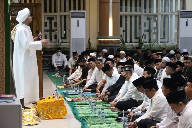 BANDA ACEH – Polda Aceh menggelar peringatan maulid Nabi Muhammad SAW 1444 hijriah di Masjid Babuttaqwa Utama, Jeulingke, Kota Banda Aceh, Kamis malam, 1 Desember 2022.