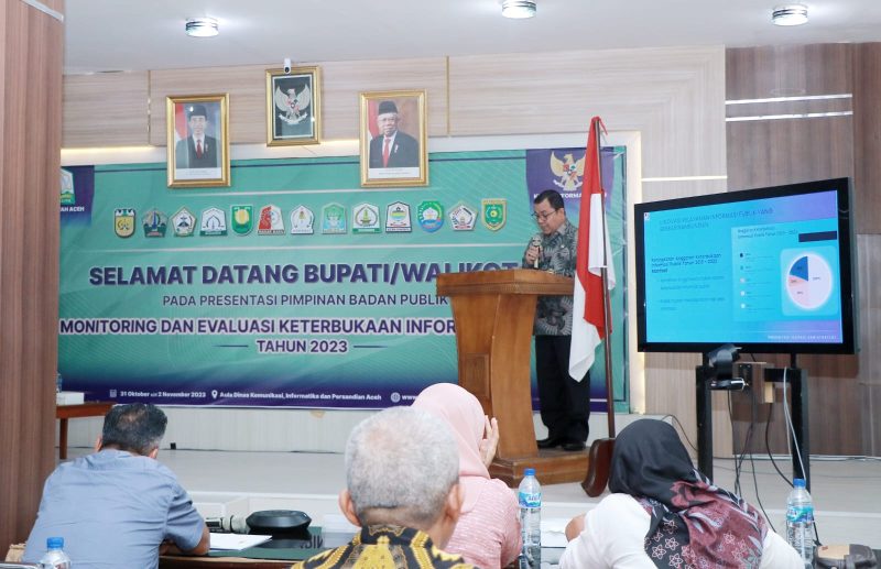 Presentasi itu dilakukan terkait dengan kebijakan Komisi Informasi Aceh (KIA) menggelar tahapan rangkaian evaluasi keterbukaan informasi public tahun 2023, bagi 13 kepala daerah d Aceh.