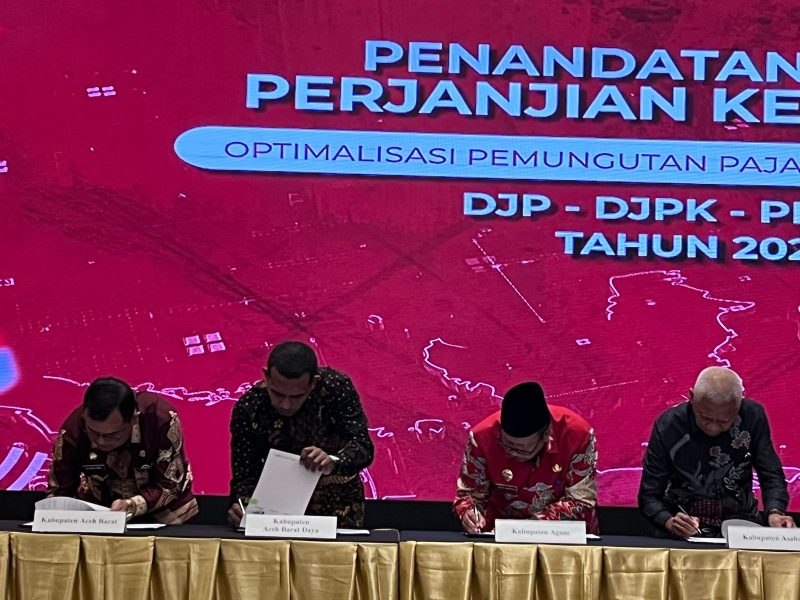 Jakarta – Dalam rangka meningkatkan pelayanan publik dan mewujudkan kesejahteraan masyarakat melalui penyerahan sebagian urusan pemerintahan kepada daerah yang diikuti dengan pendanaannya, Penjabat (Pj) Bupati Aceh Barat Drs. Mahdi Efendi menandatangani Perjanjian Kerja Sama (PKS) dengan Direktorat jenderal Pajak (DJP) Direktorat Jenderal Perimbangan Keuangan (DJOK) Kementerian Keuangan Republik Indonesia tentang optimalisasi pungutan pajak pusat dan daerah yang dilaksanakan di kantor pusat direktorat jenderal pajak Jakarta, Selasa, (22-08-2023).