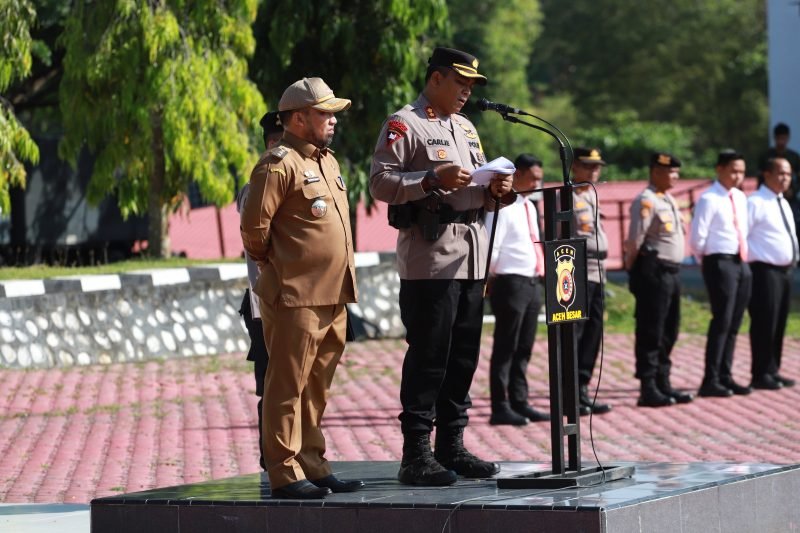 Kota Jantho – Penjabat (Pj) Bupati Aceh Besar Muhammad Iswanto, S.STP MM menghadiri Apel Gelar Pasukan Operasi Ketupat Seulawah Tahun 2023 dalam rangka pengamanan Hari Raya Idul Fitri 1444 H di halaman Mapolres Aceh Besar, Senin pagi (17/4/2023).