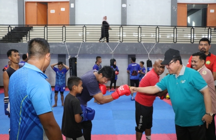 Dengan mengenakan pakaian olahraga lengkap, Pj Bupati Aceh Barat memantau langsung sekaligus memberikan semangat kepada para atlet pada masing-masing Cabang Olahraga (Cabor) yang sedang berlatih dengan sungguh-sungguh di pusat Training Center (TC) Gedung Olahraga dan Seni (GOS) Kabupaten Aceh Barat.
