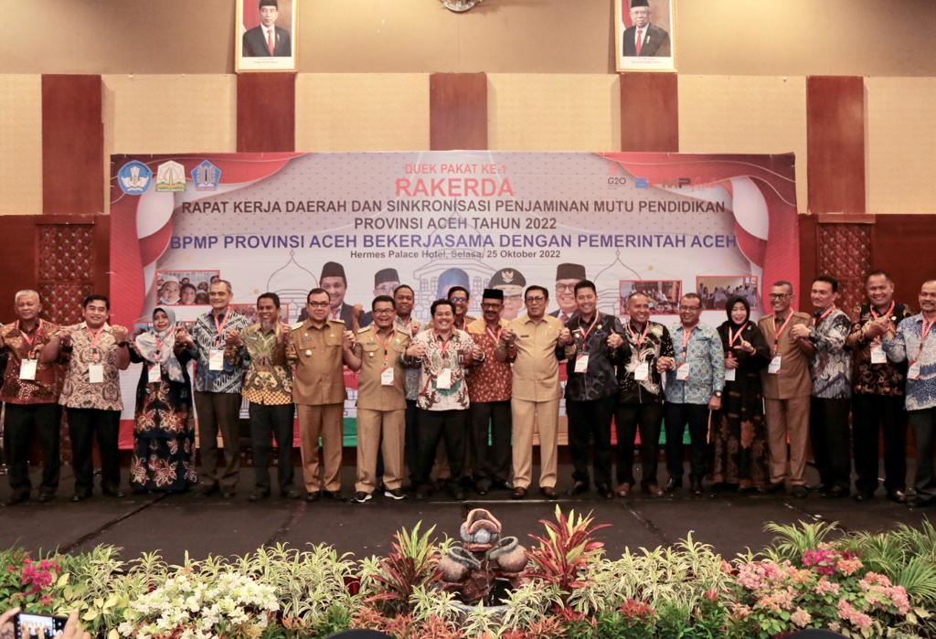 NOA | Aceh Barat – Pj Bupati Aceh Barat Drs. Mahdi Efendi mengikuti kegiatan Duek pakat ke 1 Rapat Kerja Daerah (Rakerda) dan sinkronisasi perjaminan mutu pendidikan Provinsi Aceh tahun 2022 kerjasama Balai Penjaminan Mutu Pendidikan (bpmp) dengan pemerintah Aceh, di hotel hermes palace banda Aceh, Selasa, (25/10-2022).