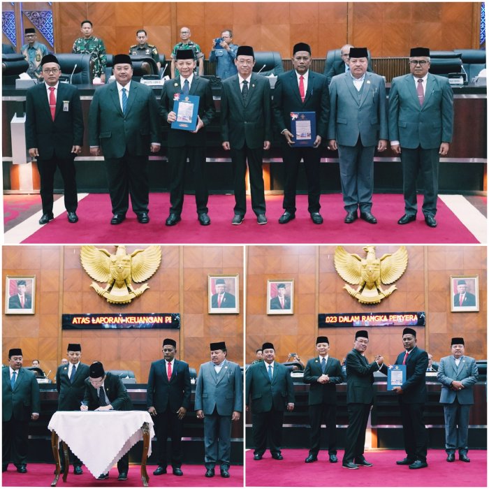 BANDA ACEH – Dewan Perwakilan Rakyat Aceh (DPRA) menggelar rapat paripurna penyerahan Laporan Hasil Pemeriksaan Badan Pemeriksa Keuangan (BPK) RI Perwakilan Aceh atas laporan keuangan Pemerintah Aceh Tahun Anggaran 2022.