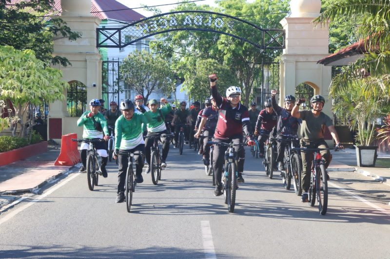 Banda Aceh – Kapolda Aceh Irjen Ahmad Haydar dan Panglima Kodam Iskandar Muda (Pangdam IM) melaksanakan olahraga sepeda atau gowes, Sabtu, 27 Mei 2023. Gowes yang juga diikuti Forkopimda itu start dari lapangan Blang Padang dan finish di Polda Aceh, serta dilanjutkan dengan mancing mania.