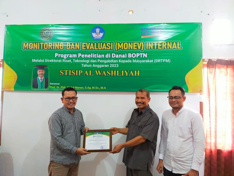 Banda Aceh – Pusat Penelitian dan Pengabdian kepada Masyarakat Sekolah Tinggi Ilmu Sosial dan Ilmu Politik (P3M STISIP) Al Washliyah Banda Aceh menggelar kegiatan Monitoring dan Evaluasi (Monev) Internal Program Penelitian yang didanai dari Bantuan Operasional Perguruan Tinggi Negeri (BOPTN) bagi Dosen Pemula STISIP Al Washliyah Banda Aceh. Kegiatan ini dihadiri Ketua STISIP Adnin AS, Kepala P3M STISIP Al Washliyah Banda Aceh Saprijal, S.Hum., M.A serta para dosen dengan menghadirkan Guru Besar Antropologi UIN Ar-Raniry Banda Aceh Prof. Dr. Phil. Abdul Manan, S.Ag., M.Sc., M.A sebagai Reviewer yang berlangsung di Kampus Al Washliyah Banda Aceh, Sabtu (14/10/2023).