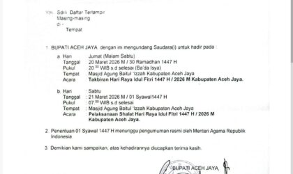 Aceh Jaya – Pemerintah Kabupaten Aceh Jaya mengundang seluruh masyarakat untuk menghadiri rangkaian kegiatan menyambut Hari…