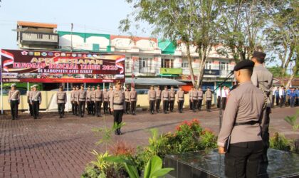 Meulaboh — Kapolda Aceh, Irjen Pol. Drs. Marzuki Ali Basyah, memimpin Apel Kesiapan Tanggap Darurat Bencana…