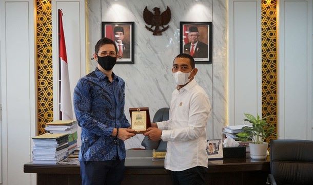 BANDA ACEH – Ketua Dewan Perwakilan Rakyat (DPR) Aceh , Dahlan Jamaluddin menerima kunjungan silaturrahmi Political Officer Kedutaan Besar Amerika Serikat (AS) untuk Republik Indonesia, Greg Bauer, di ruang kerja Ketua DPRA, Rabu (9/3/2022).